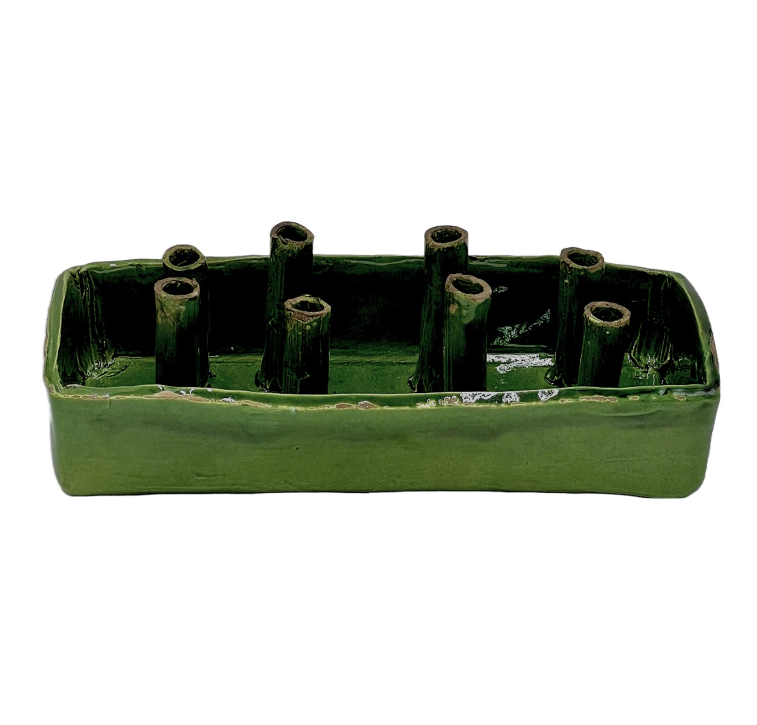 Ceramic Boat Tulipiere, Green, 8-Hole