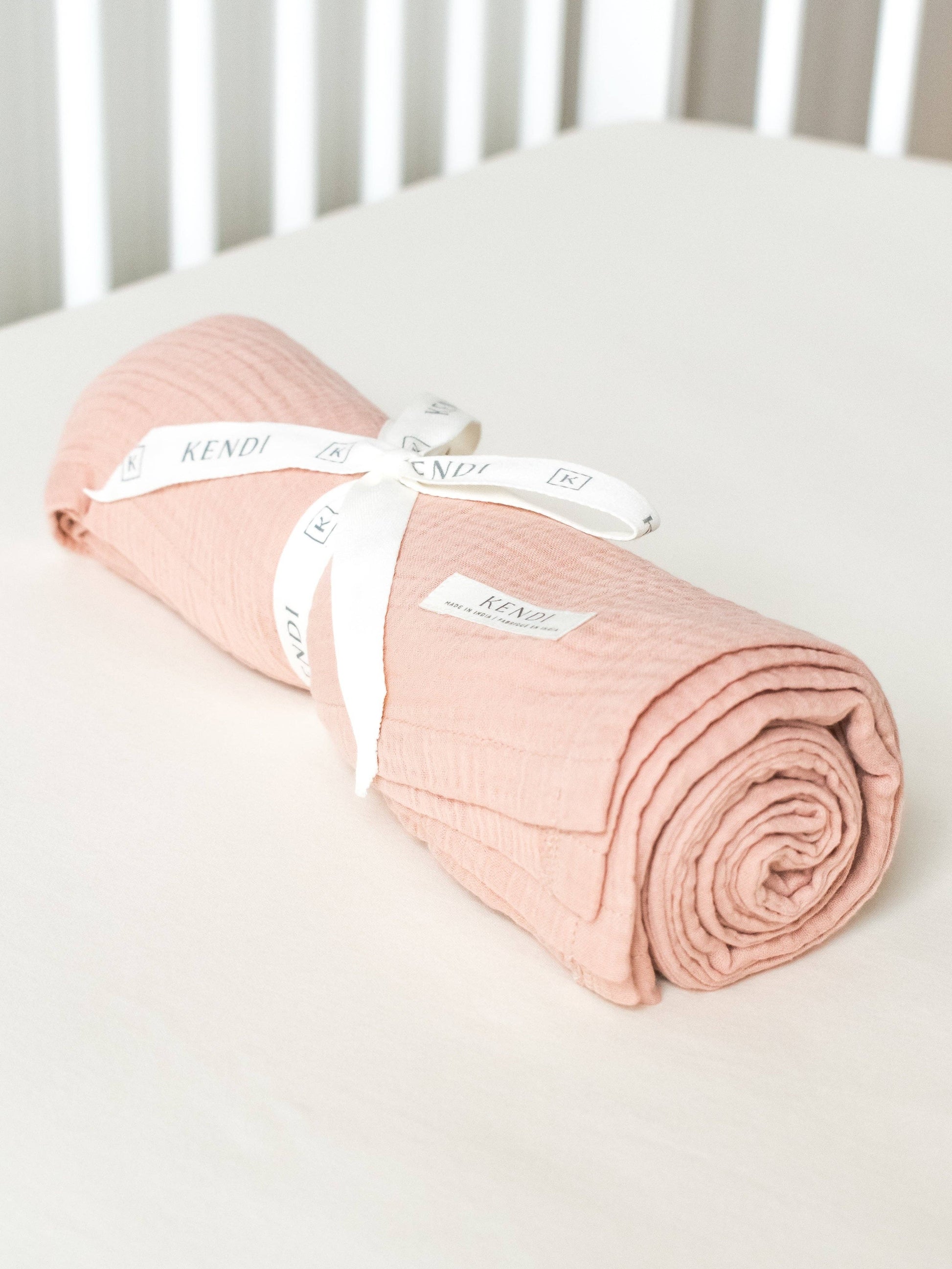 Our Muslin Swaddles are made from a super soft and stretchy double-layered organic gauze fabric.