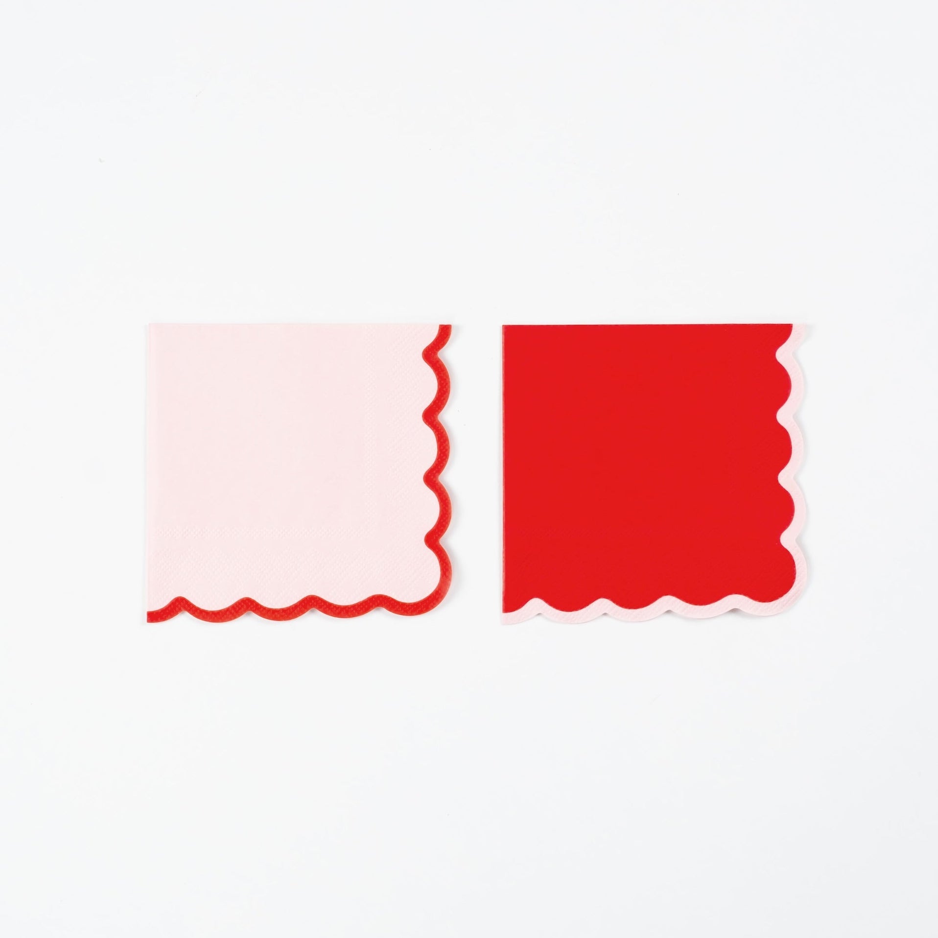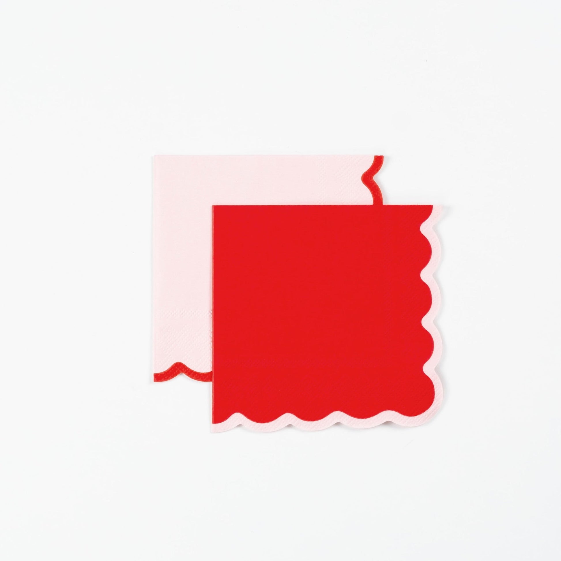 Add a touch of charm to your next gathering with From the Heart Scallop Cocktail Napkins! These elegant napkins come in a charming red and pink color, perfect for adding a pop of color to your table. With their scallop edge design, they are sure to impress your guests and add a touch of sophistication to any occasion. Elevate your hosting game with these beautiful napkins! Pack includes 16 napkins. Size: 5x5'' ❤️ Perfect For: • Valentine’s Day parties & Galentine’s brunch • Classroom celebrations & cookie swaps • Engagements, bridal showers & anniversaries • Dessert tables, cocoa bars & movie nights Pair with our coordinating From the Heart Dinner & Small Plates for a layered look that’s love at first sight.