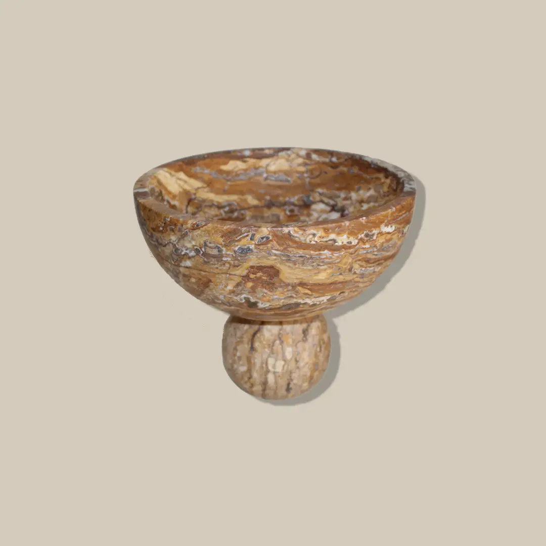 Introducing the Larabee Circle Bowl. Hand crafted out of a unique slab of Marble. The Larabee Circle Bowl is the perfect accessory everyone needs in their home. Use on a stack of books, as a catchall beside the bed, or on your coffee table. Please note that marble is a natural material and as such, is subject to natural variations in color, veining and spotting. Dimensions: 6.5" H x 8" L x 8" W