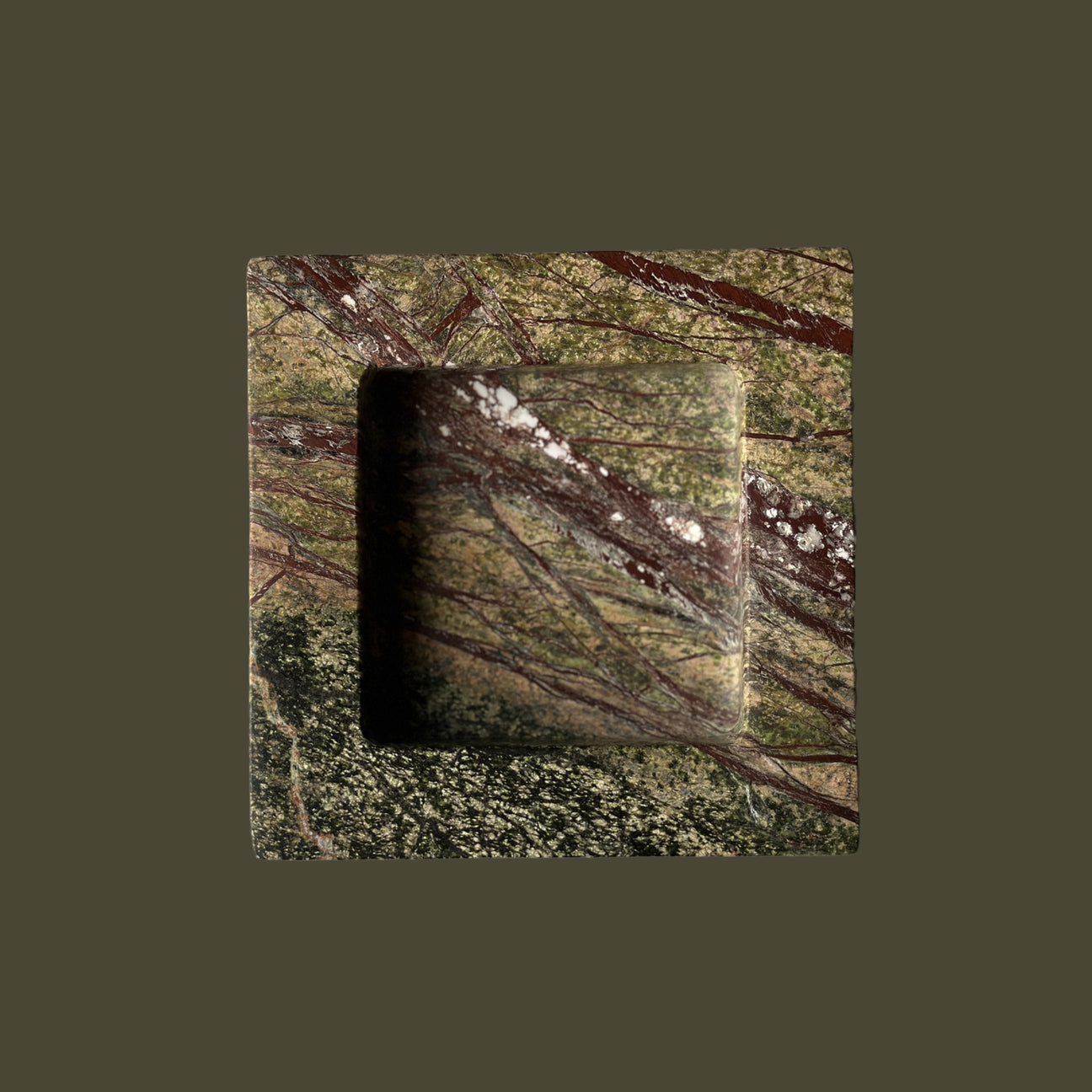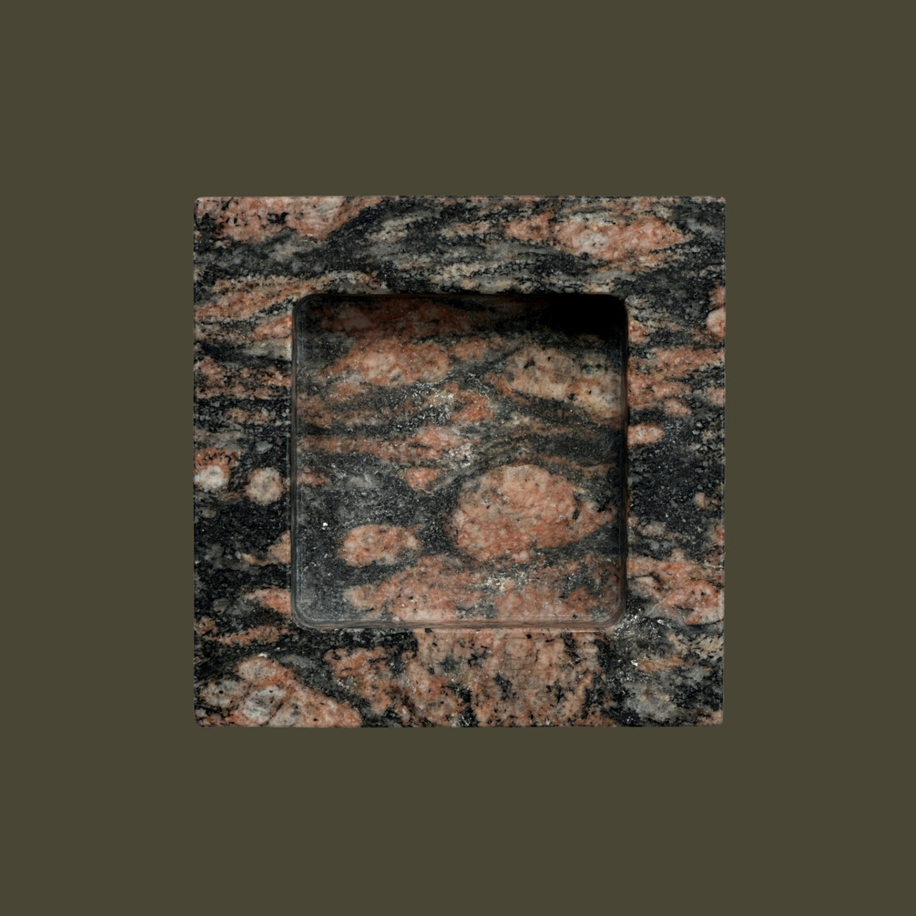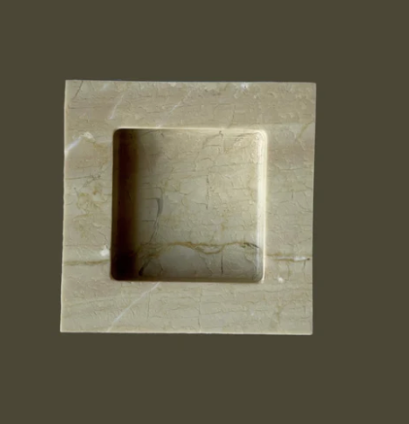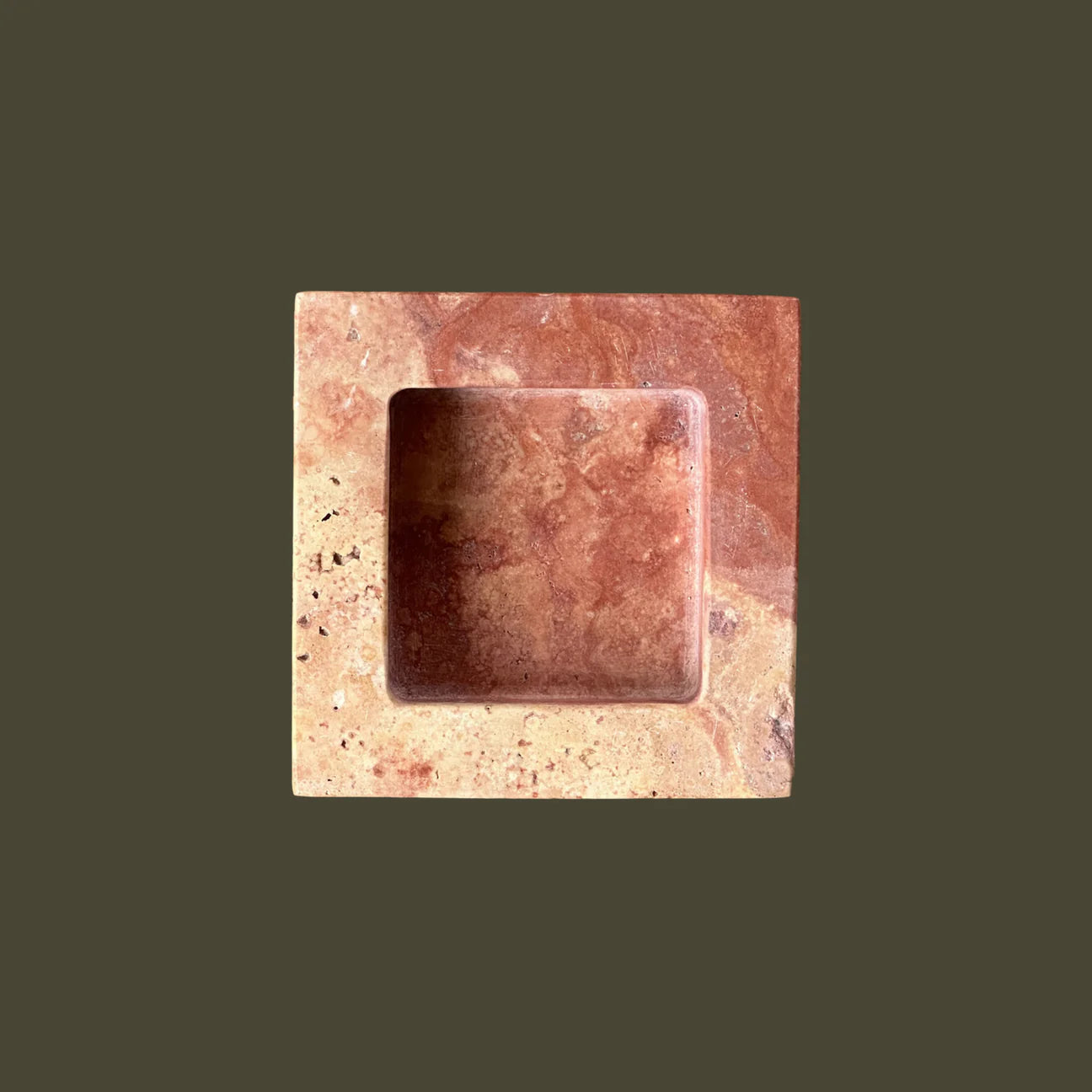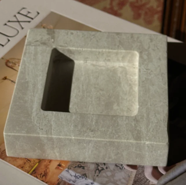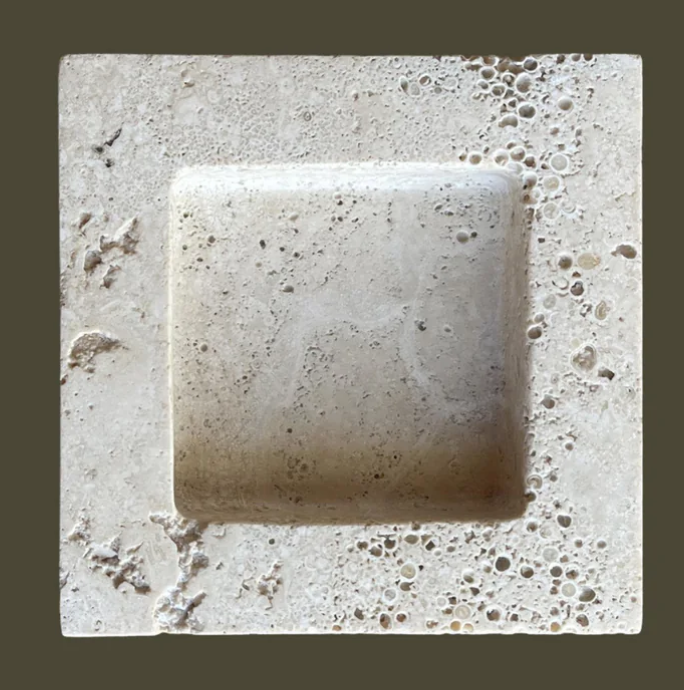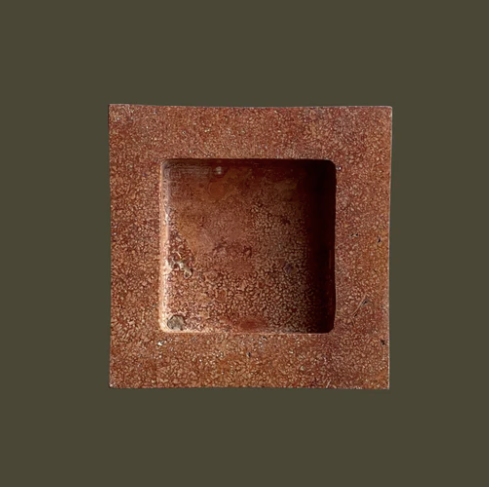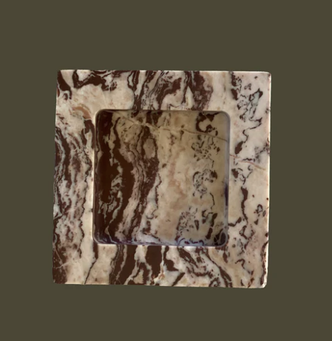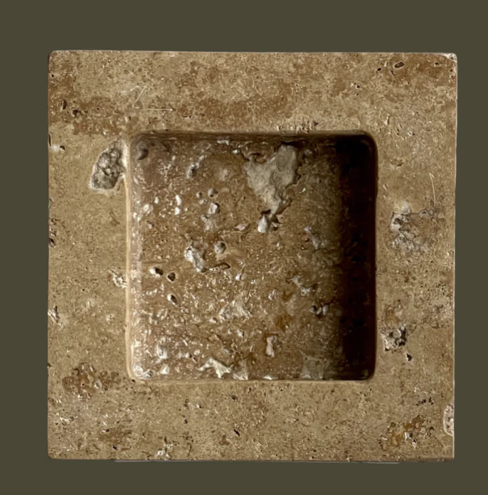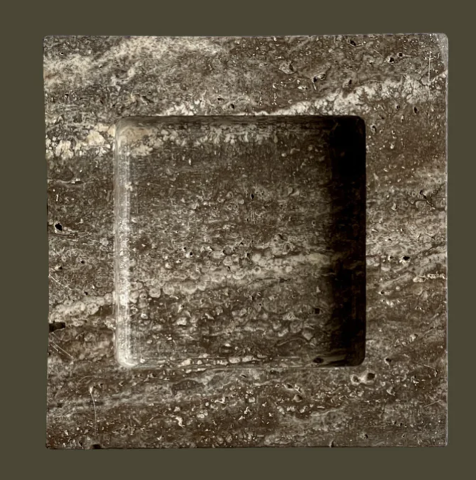 The Teo is a chunky, five and half-inch square catchall cut from a single piece of solid marble or stone with perfectly imperfect lines, hand-finished by artisans in a growing stone atelier in Rajasthan, India.